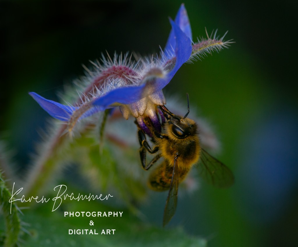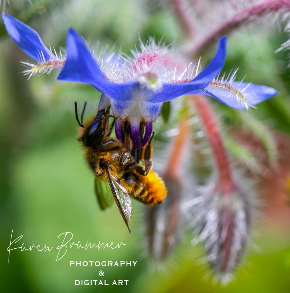 A Honeybee on a Borage flower. Photo by Karen Brammer.